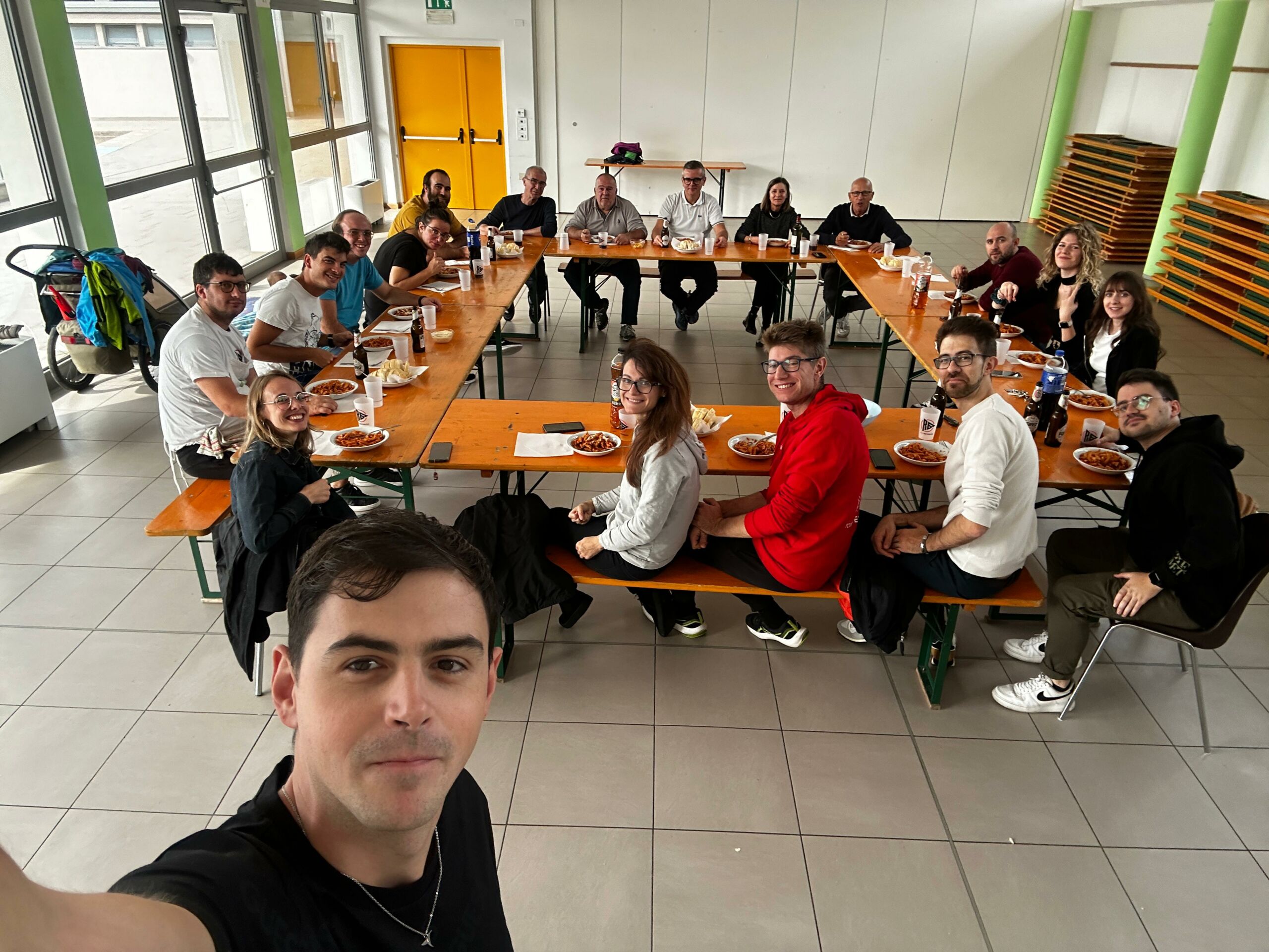 Amicizia. Il concetto è lo stesso della Corsa Matta perché anche in questo caso ho respirato questo legame forte tra le persone implicate. Certo, i tavoli disposti a cerchio (quadrato dato la forma dei tavoli da sagra) hanno sicuramente aiutato questo clima visto che era facile vedere tutti in faccia. Però c’è stato molto altro: un modo familiare di parlarsi, chili di aneddoti condivisi, anni e avventure a cementare ogni interazione tra queste persone. C’è qualcosa di incredibilmente solido e profondo che mi piacerebbe raccontarvi. Qualcosa che si compone degli anni di campeggi fatti insieme, di materassini condivisi alla GMG, di Christian che rende tutti partecipi del suo grande desiderio di conoscere Rose Villain, di vari aneddoti che coinvolgono biciclette, feste, pranzi e cene, di amici condivisi e di una familiarità che accoglie anche chi, come me, arriva da fuori.
